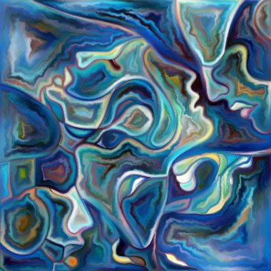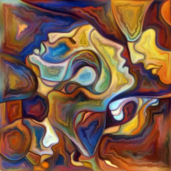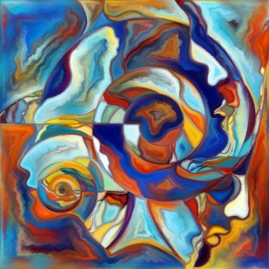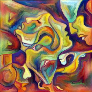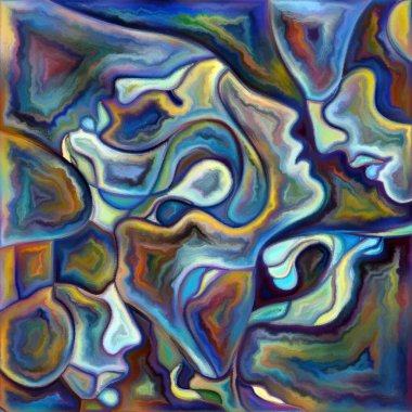 "Canvas Up Close" serisi. Renkli resim tarzında yüzlerin ve sembollerin kompozisyonu insan ilişkileri ve dünya ile olan bağlantıları ile ilişkilidir.