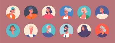 Çeşit çeşit insan avatarları, erkek ve kadın yüzleri
