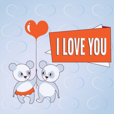 El yazısı tabelası Tatlı Aşk. Sevgililer Günü 'nün kutlu olsun. Balon taşıyan ayılar aşk hedefleri olan tutkulu çifti temsil ediyor..
