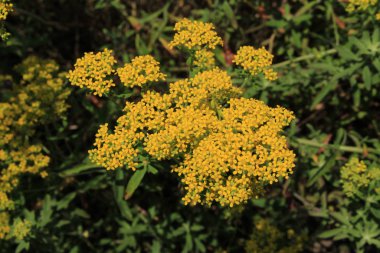 Sarı çiçek çalısı. çok küçük sarı çiçekler. Çiçek tarlasında bir çiçek çalısı. Ukrayna çiçekleri.