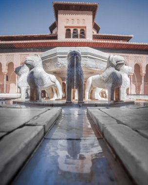 Granada, İspanya 'daki Alhambra Sarayı' ndaki aslanlar.