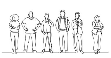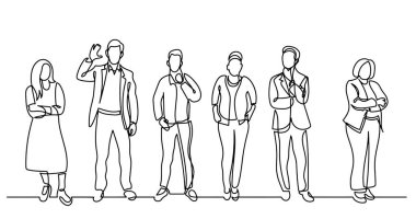 çeşitli grup ayakta insan sürekli çizgi çizme