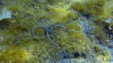 Deniz tabanında kahverengi yosunlarla kaplanmış Brittle Star.
