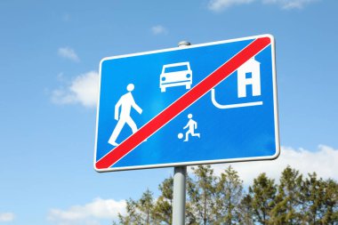 Şehir caddesindeki yaya bölgesi tabelasının sonu. Metin için boşluk
