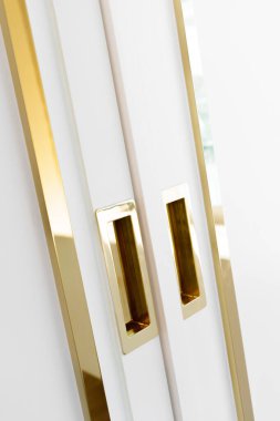 Geometrik beyaz arka planda altın dikdörtgen küpelerin panoramik görüntüsü