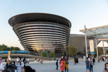 Dubai, Birleşik Arap Emirlikleri- 2 Aralık 2021: Alif Pavyonu 'nun görünümü, Dünya Fuarı 2020' nin 3 alt teması arasında ana Mobilite Pavyonu 'dur. Gelecekçi modern mimari