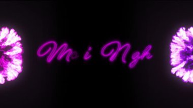 Sinema gecesi metni üzerine pembe neon geometrik şekillerin animasyonu. soyut, ışık, desen ve hareket kavramı dijital olarak oluşturulmuş video.