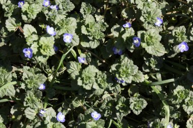 Miquel 'in mazus çiçekleri. Phrymaceae daimi bitkileri. İlkbahardan yaz başına kadar, merkezi bronzlaşma bölgesinde tüylü mor çiçekler çıkar. Taşlarla yayılma özelliğine sahip..