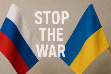 Ulusal bayraklarla, Ukrayna 'yla, ABD' yle ve Rus teröristle savaşı durdurun. askeri