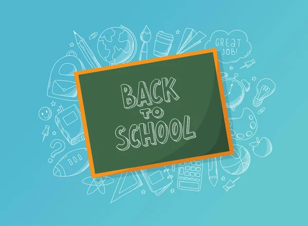 "Okula Dönüş" yazısı yeşil karatahta ve karalamalarla süslenmiş. Pankartlar, davetiyeler, kartlar, satışlar, şablonlar, posterler vs. için iyidir. EPS 10