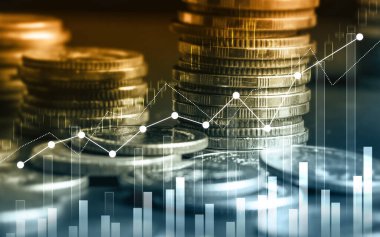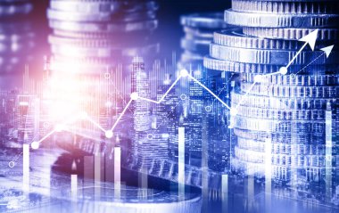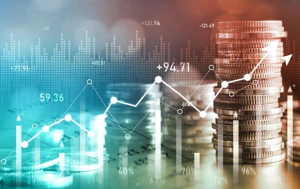Finans ve para teknolojisi iş refahı ve varlık yönetimi kavramı. Yaratıcı grafik, refah karı elde etmek için değerli varlıklara yatırım yaparak ekonomi ve mali büyümeyi gösteriyor .