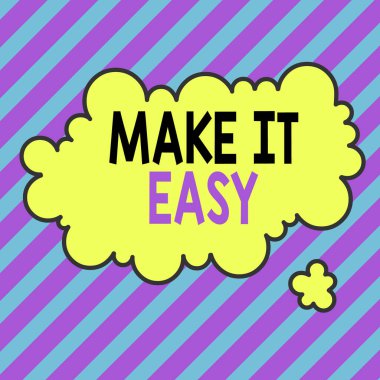 Hand writing sign Make It Easy, Business idea Smart approach Effortless Free from worries or difficulties Blank Thunderstorm Speech Bubble With Copy Space For Web Banner.