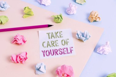 Lightbox with motivational words for self-care, mental health, emotional well-being. Top view.