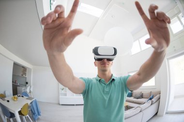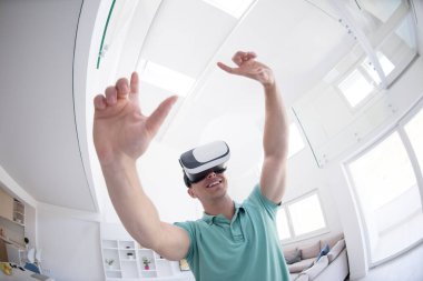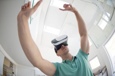 "sanal gerçeklik VR-kulaklık gözlük kullanan adam"