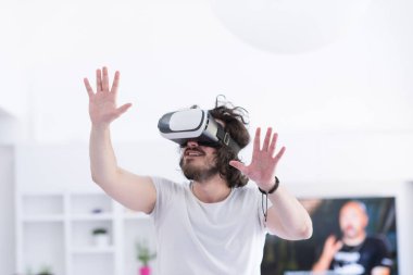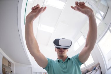 "sanal gerçeklik VR-kulaklık gözlük kullanan adam"
