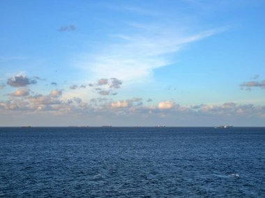 Okyanus manzaralı, sisli, pastel renkli, güzel bir arka plan. Yüksek kalite fotoğraf