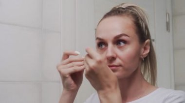 Young woman is removing facial moisturising mask from face,doing her everyday routine. Beauty and self care concept.