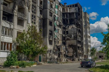Ukrayna 'daki savaş sırasında şehirdeki evleri yakıp yıktılar.