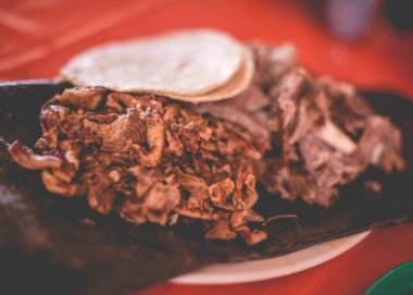 Gallo Pinto ve Pico de Gallo tabakları ahşap masada. Nikaragua yemekleri Gallo pinto ile pico de gallo ve Quesillo servis edilir.