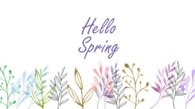 4k Flowering lilac branches sway slightly in opposite corners. Greeting card with text "Hello spring". Pink background. Concept of springtime and spring holidays. Stop motion animation. Flat lay.