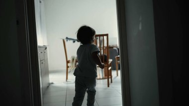 Silhouette of couple standing in corridor in crisis. Parents with child feeling worry and anxiety. Husband and wife discussing difficult situation