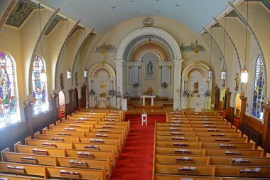 Interior of Song Vinh Church, also known as Parish Song Vinh which attracts tourists to visit spiritually on weekends in Vung Tau, Vietnam. Song Vinh Church have construction building look like France