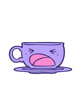 Fincan karakteri parmağıyla işaret ediyor. Alfa kanalı. Döngülü canlandırma