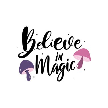 Büyüye inan. El yazısıyla yazılmış harfler. Şirin bir kart ya da tişört baskı şablonu. Vektör aktarımı.