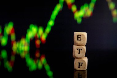 Para yığınında "banka" sözcüğünün yazılı olduğu tahta küpler. Küresel ekonomik durgunluk, borsa çöküşü, enflasyon, ekonomik kriz, düşüşü gösteren kırmızı ok. Yüksek kalite fotoğraf