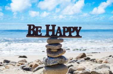 İlham verici Motivasyon Konsepti - kayanın üzerinde yazılı olan mutlu yerinizi bulun.