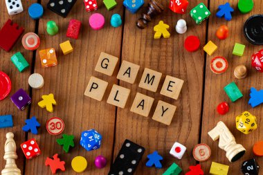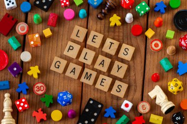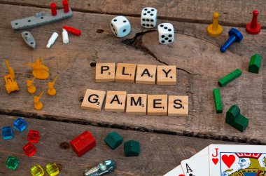Scrabble oyun harflerinin yakın plan fotoğrafı "oyun oyunları" kelimelerini heceliyor.".