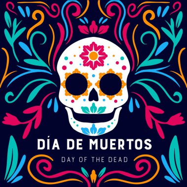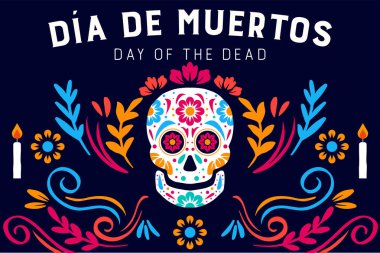 düz dizayn vektörü dia de muertos yatay afiş illüstrasyonu