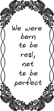 Gerçek olmak için doğdun, mükemmel olmak için değil. İlham verici bir alıntı. El çizimi harfler. Vektör illüstrasyonu.