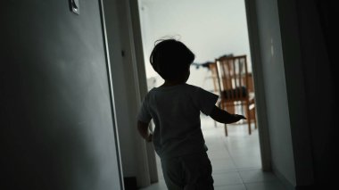 "Evin içinde koşan çocuğun arka görüntüsü"... "... yavaş çekimde çekilen"... Kaygısız çocuk apartmandaki kanepeye dalarak eğleniyor.