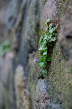 Wall-rue (Asplenium ruta-muraria L.) doğal biyopside kaya çatlağında.