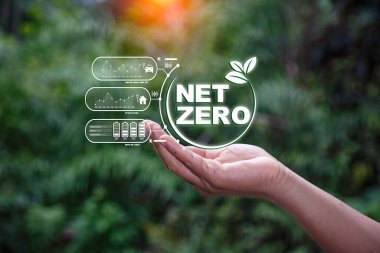 Büyüteç içinde ağ sıfır simgesi, Ağ sıfır sera gazı emisyon hedefi, Karbon nötr ve net sıfır konsepti, Doğal ortam iklim-nötr uzun vadeli stratejisi.