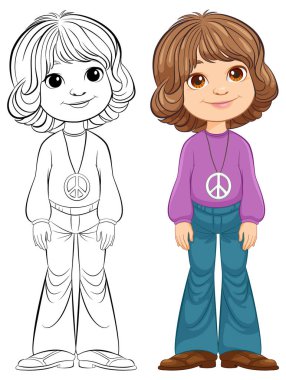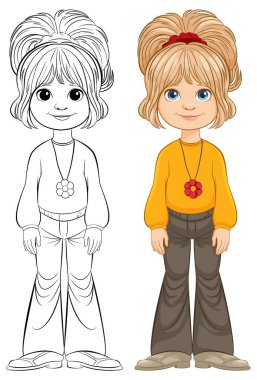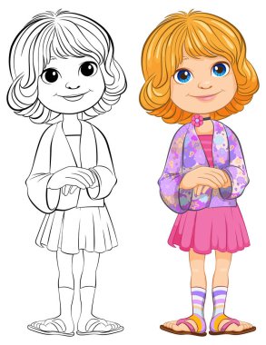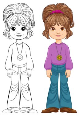 Bir kızın vektör çizimi ve onun çizim sanatı.