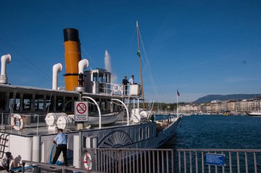 GENEVA, SWitzERLAND - 17 Haziran 2023: İsviçre 'nin Cenevre kentindeki Costal Steet' ten İnanılmaz Panorama