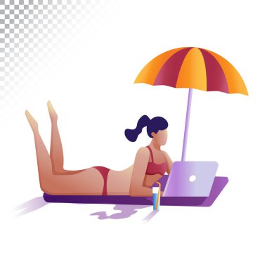 Serbest Çalışanlar Yüzme Havuzu Vektör Resimlerinde İçme Kokteylleri ve Düz Çizgi Film Biçimi Dizüstü Bilgisayarlar Kullanılıyor