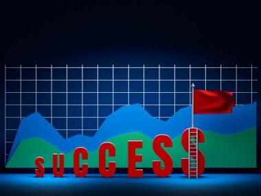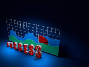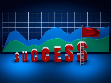 "Başarı" kelimesinin harfleri grafik geliri önündeki basamaklarda sıralanmıştır. Zafer kelimelerini temsil eder. Bir numara olmak, zirve, başarı..