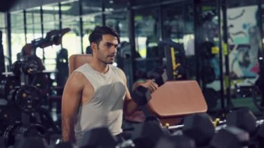 Genç adam spor salonunda şınav çekiyor.