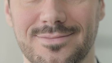 Siyah arkaplanda mutlu hisseden sakallı bir adamın gülümseyen erkek portresi. İnsanlar ve olumlu duygu kavramı.