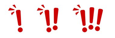 Basit ve net bir biçimde gösterilen üç takım koyu kırmızı ünlem işareti.