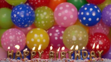 Mavi arka planda renkli balonlar. Mutlu yıllar. 4k animasyonu.