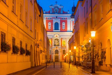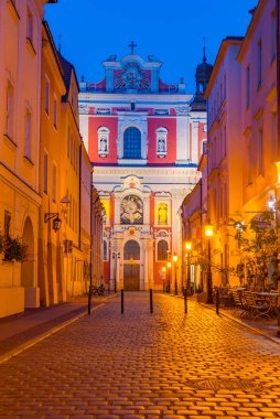 Günbatımında Poznan Polonya 'daki Aziz Stanislaus Cizvit Koleji ve Barok Kilisesi