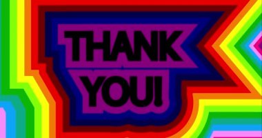 Teşekkür ederim. Komik afiş, konuşma balonu, poster etiketi konsepti. Geometrik renkli eğlence tarzı, parlak bir gece partisi, mesajla. Teşekkürler. Konuşma, mesaj, mesaj. Teşekkürler. Vektör İllüstrasyonu