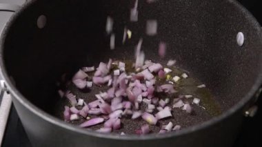 Dilimlenmiş kırmızı soğanlar düzgünce bir tepsiye dizilmiş.