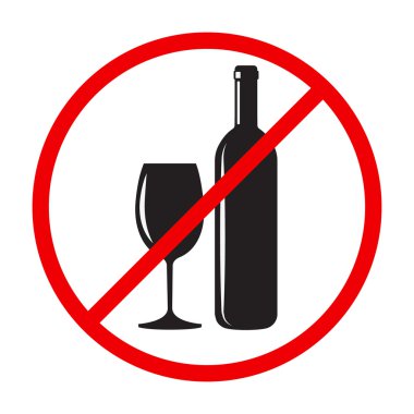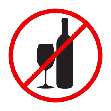 Şarap şişesi ve bardağın çarpıcı bir silueti kırmızı bir içki yasağı çemberiyle çevrilidir, bu da alkol kısıtlamalarını sembolize eder. Bu görsel, içkiden uzak durmakla ilgili güçlü bir mesaj iletiyor.
