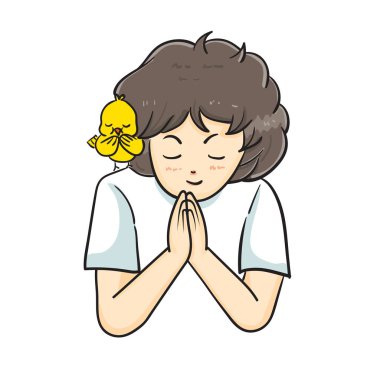 Küçük çocuk ikon vektör çizimi için dua ediyor.