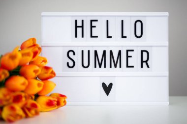 Merhaba renkli fırıldak ve dekoratif ahşap dümenli pembe arka plan manzaralı yaz metni.